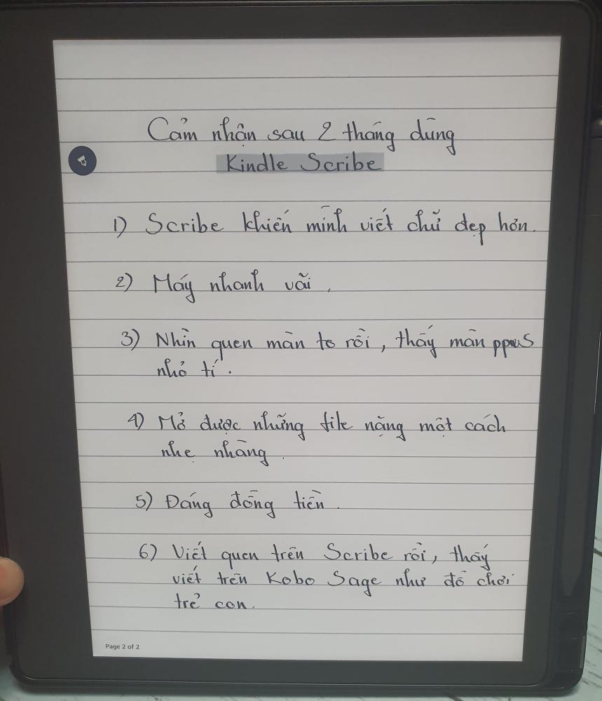 Mình dùng Kindle Scribe cũng được hơn 2 tháng rồi. Mới đầu khi máy mới ra cũng không định mua đâu vì đã có em Kobo Sage và Oasis 3 rồi. Mình chê Scribe ít tính năng và không có nút. Và khi trên tay em nó, mình nhận ra mình đã sai lầm. Tất cả những định kiến của mình về em nó đều sai. Em nó đã chứng minh bản thân xứng đáng là dòng máy Kindle cao cấp nhất của Amazon.
